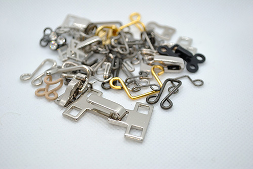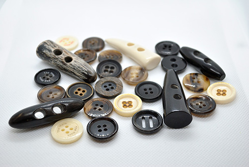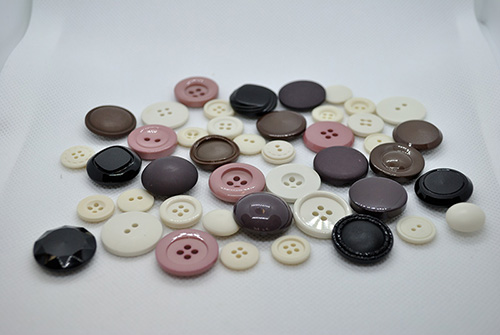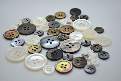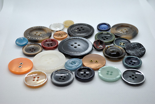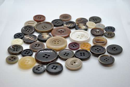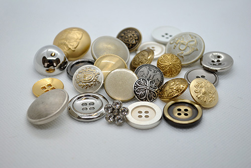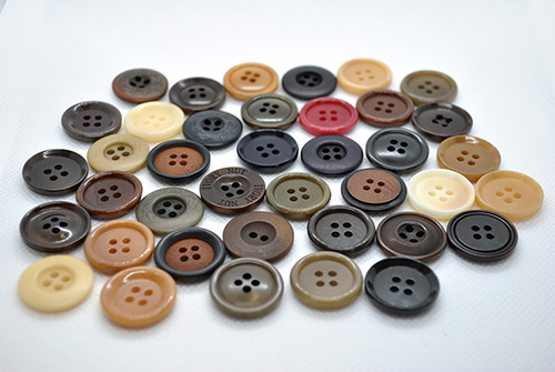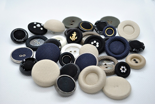 丸東様とは、ボタン、バックル、その他の付属全般のオリジナルの製作から、難しい付属の手配まで行っていただいております。